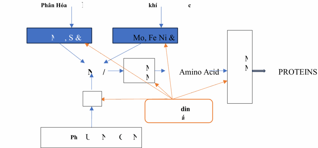 Trước hết, tất cả các loại đạm trên phải chuyển đổi thành dạng Amonia hoặc Ammonium (Nh3/NH4) nhờ các chất dinh dưỡng làm chất xúc tác.